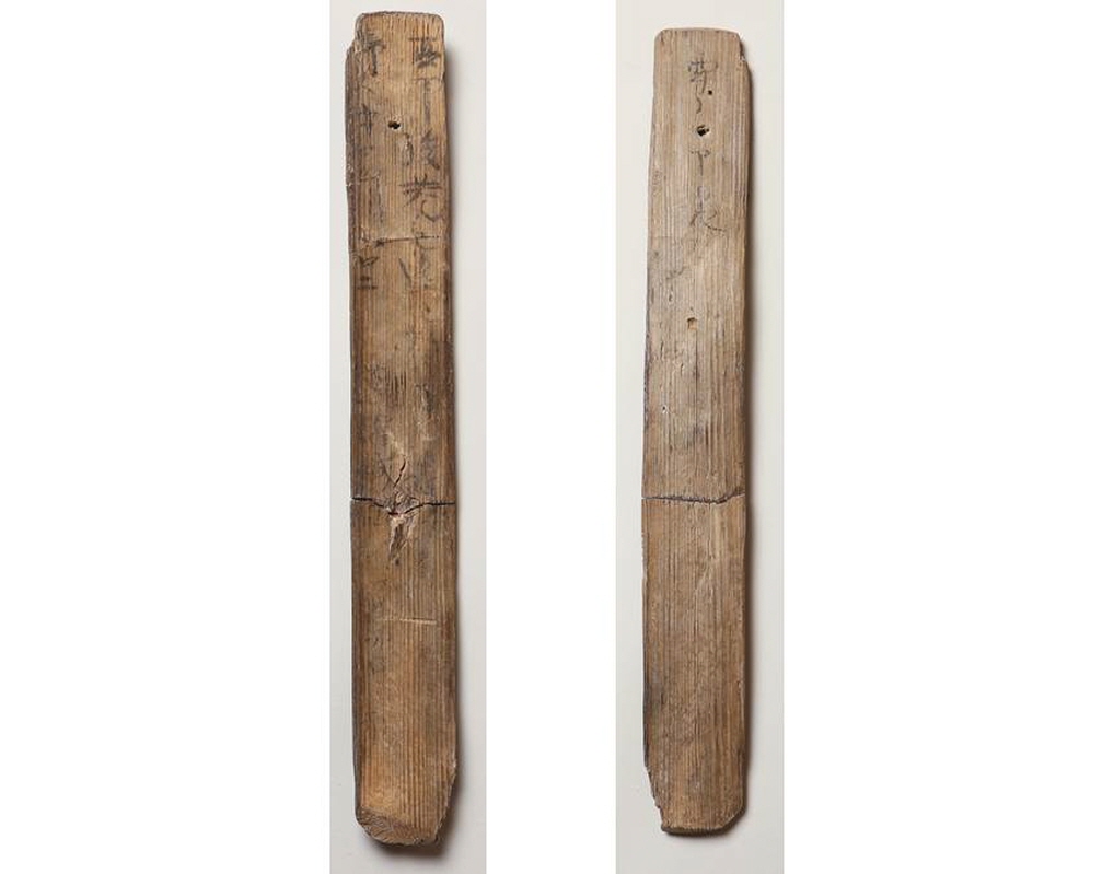 <그림2> 궁남지(宮南池) 출토 목간(출처: 국립부여박물관)