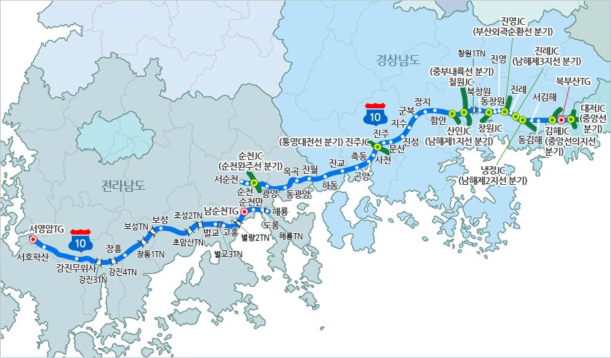 ◇ 영남과 호남을 잇는 동서 핵심 대동맥, 남해고속도로(고속국도 제10호선)