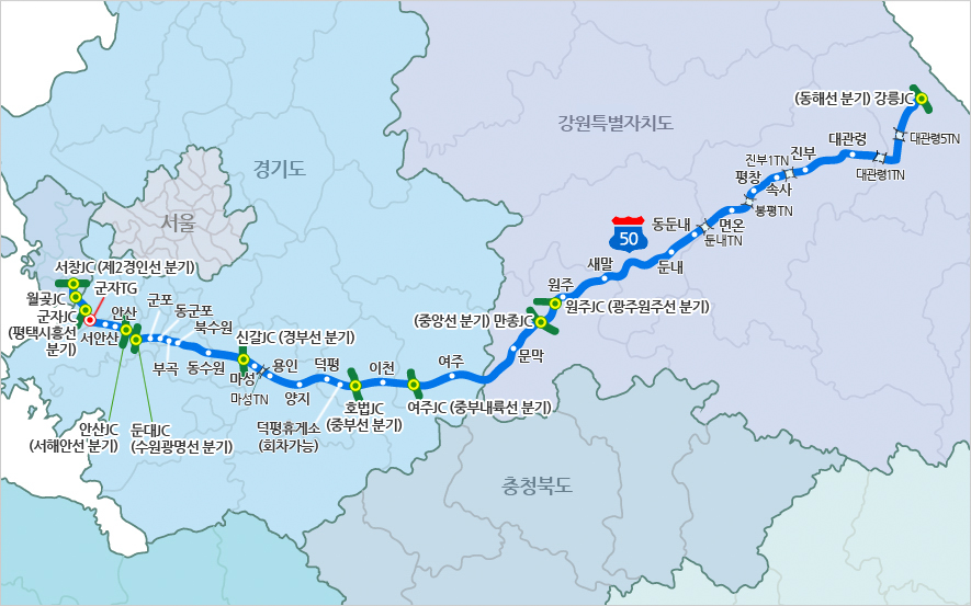◇ 대한민국 동서횡단의 상징이자 국가 대표 관광 노선, 영동고속도로(고속국도 제50호선)