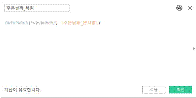 Null이 많거나 값이 이상하면 → DATEPARSE로 계산된 필드 생성