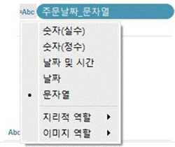 Abc 아이콘을 클릭하여 데이터 유형 변경