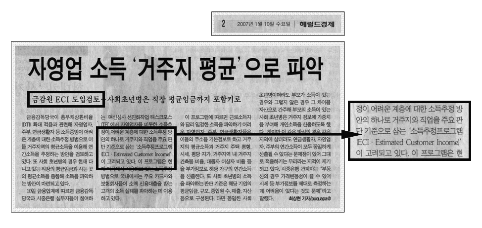 국내 유일의 고객주소기반의 소득추정 솔루션인 ECI는